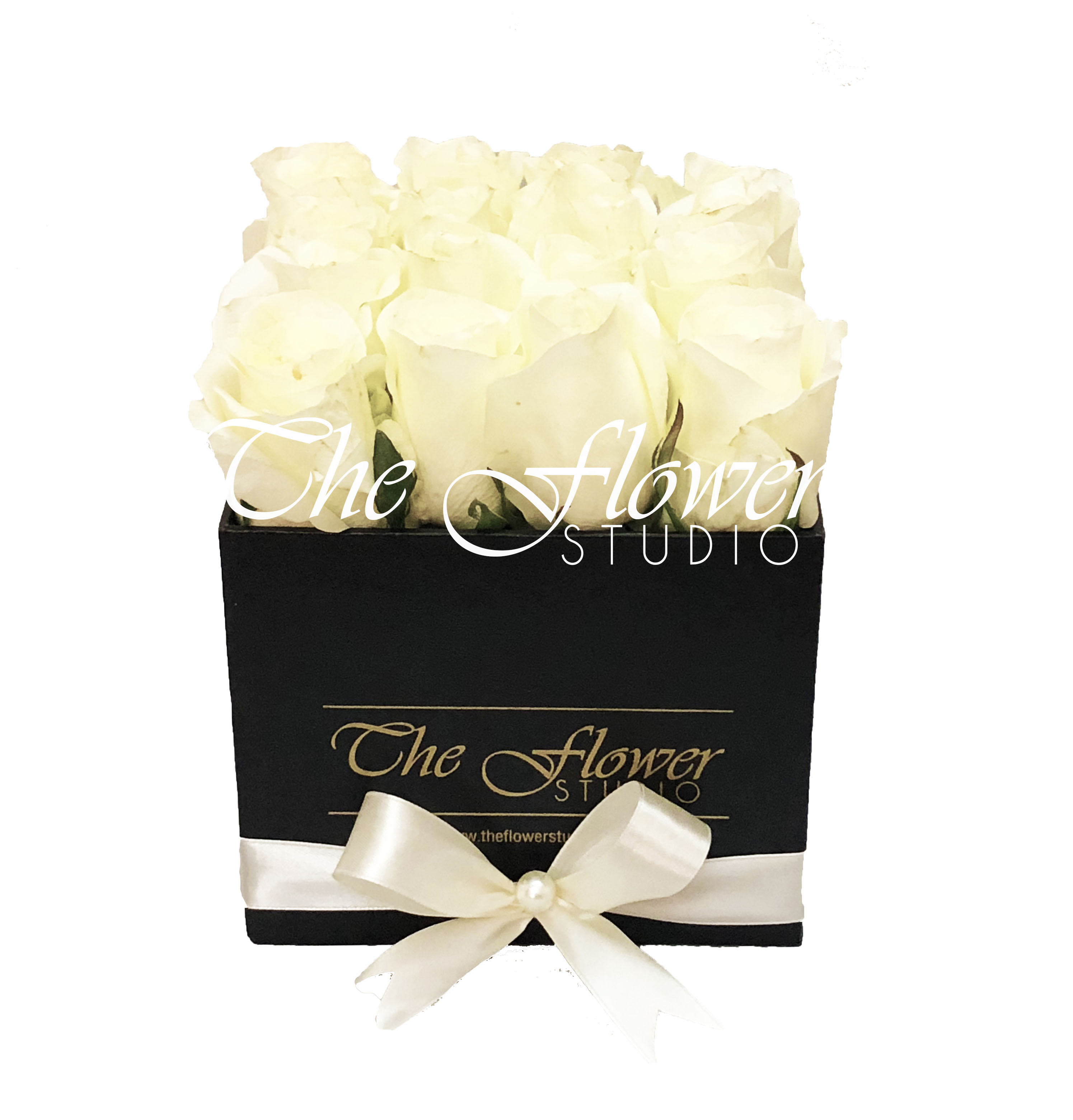 white box of roses