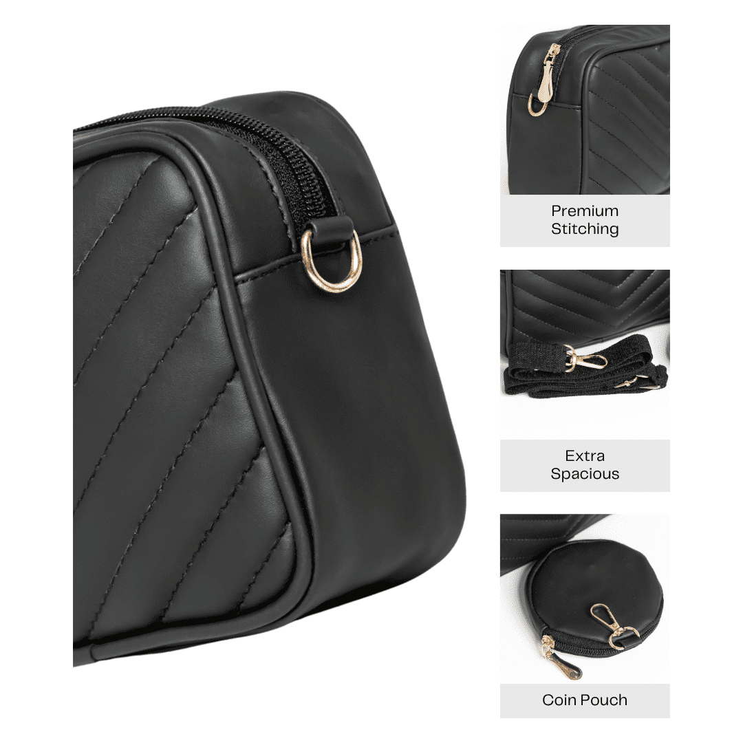 Timeless and versatile, the Aveline Crossbody Bag by tan. is crafted for the modern woman who values both style and function. Its sleek black quilted design and structured silhouette exude understated sophistication, while the gold-tone detailing adds just the right touch of polish.